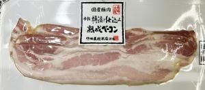 <原材料名>豚ばら肉(国産)、糖類(水あめ、ぶどう糖、砂糖)、食塩/リン酸塩(Na)、調味料(アミノ酸)、酸化防止剤(ビタミンC)、発色剤(亜硝酸Na)、香辛料抽出物、(一部に豚肉を含む)