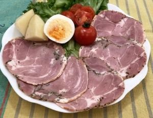 <原材料名>豚肩肉(国産)、食塩、乳糖、香辛料/調味料(アミノ酸等)、リン酸塩(Na)、酸化防止剤(ビタミンC)、発色剤(亜硝酸Na)、(一部に豚肉・乳成分を含む)