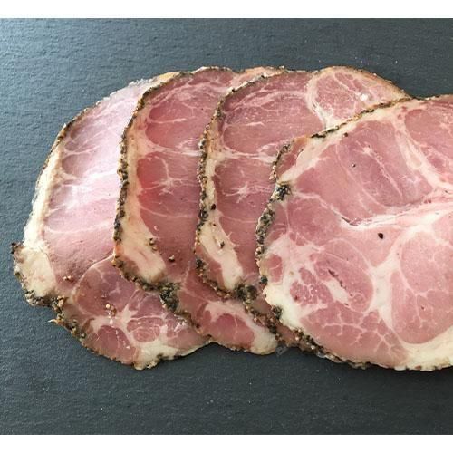 <原材料名>豚肩肉(アイルランド)、食塩、乳糖、香辛料/調味料(アミノ酸等)、リン酸塩(Na)、酸化防止剤(ビタミンC)、発色剤(亜硝酸Na)、(一部に豚肉・乳成分を含む)