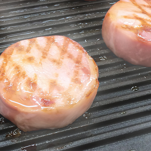 <原材料名> 豚ロース肉(国産)、食塩、乳糖/リン酸塩(Na)、調味料(アミノ酸等)、酸化防止剤(ビタミンC)、香辛料抽出物、発色剤(亜硝酸Na)、(一部に豚肉・乳成分を含む)